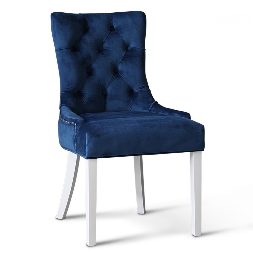Dalsland matgrupp: Matbord i vit / ek med 6 st Tuva stolar i blå sammet