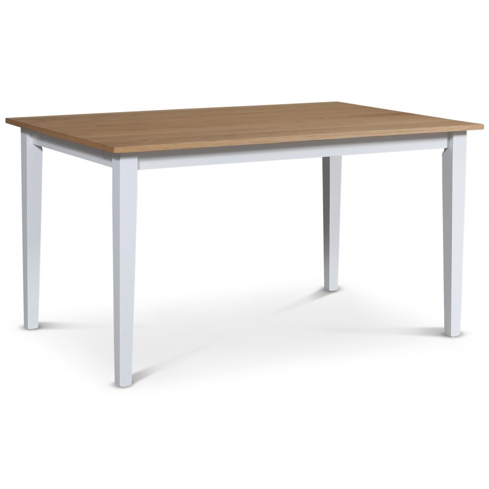 Fårö matgrupp; matbord 140x90 cm - Vit / oljad ek med 4 st Fårö matstolar med grå tygsits
