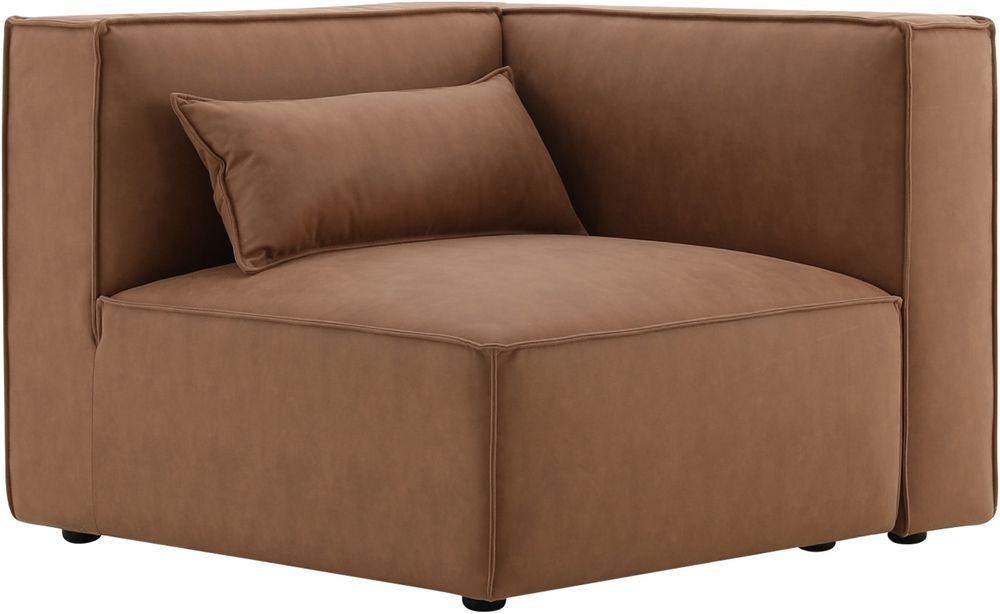 Modulsoffa i 5 delar, klädd i cognacsfärgat mjukt sammetstyg. Soffan består av 2 st hörnor, 2 st mittdelar och 1 fotpall. Systemet tillåter att bygga olika kombinationer.