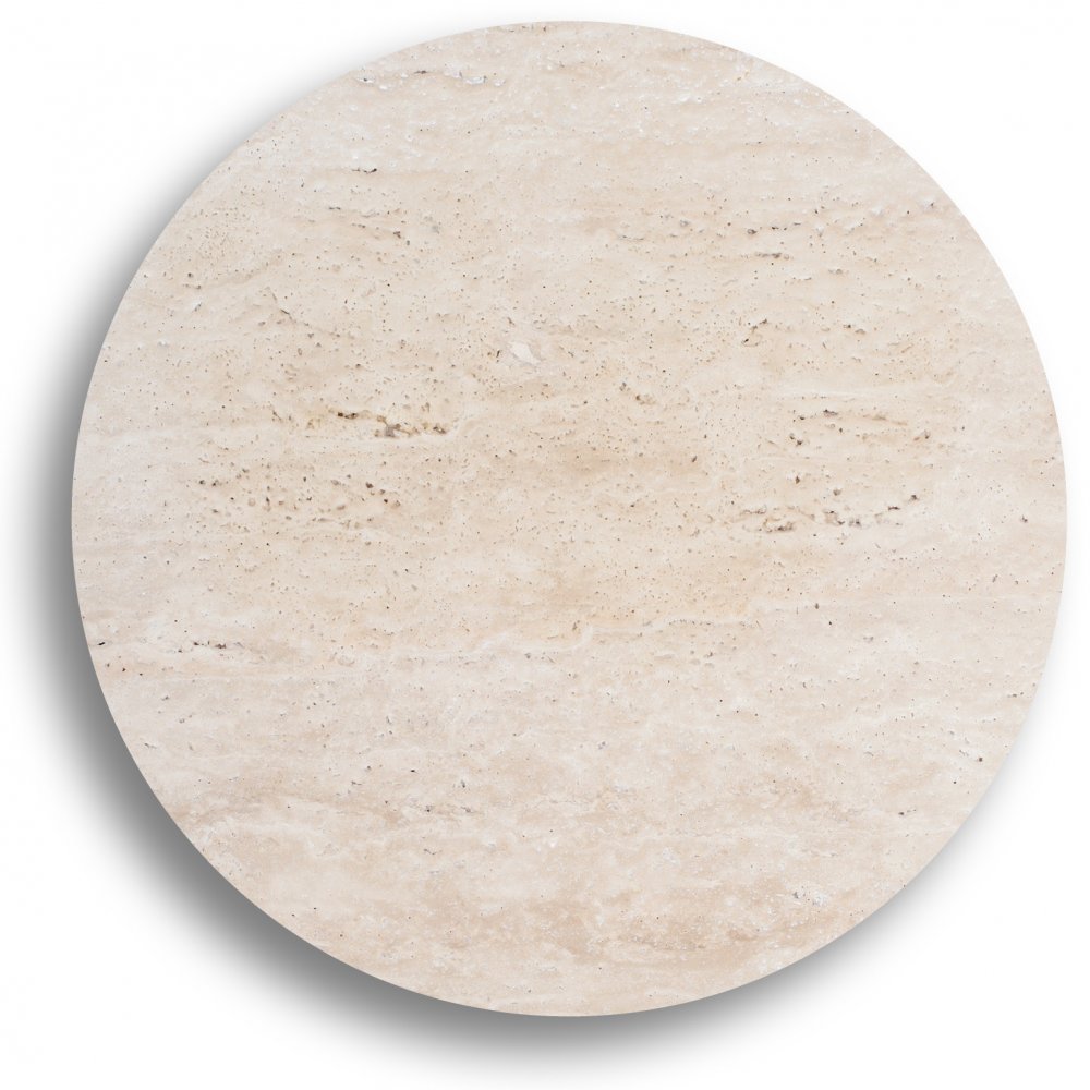 Ett snyggt soffbord med en lyxig modern känsla. Underredet är tillverkat av matt svart metall och bordsskivan är av äkta ljus kalksten, Travertin.