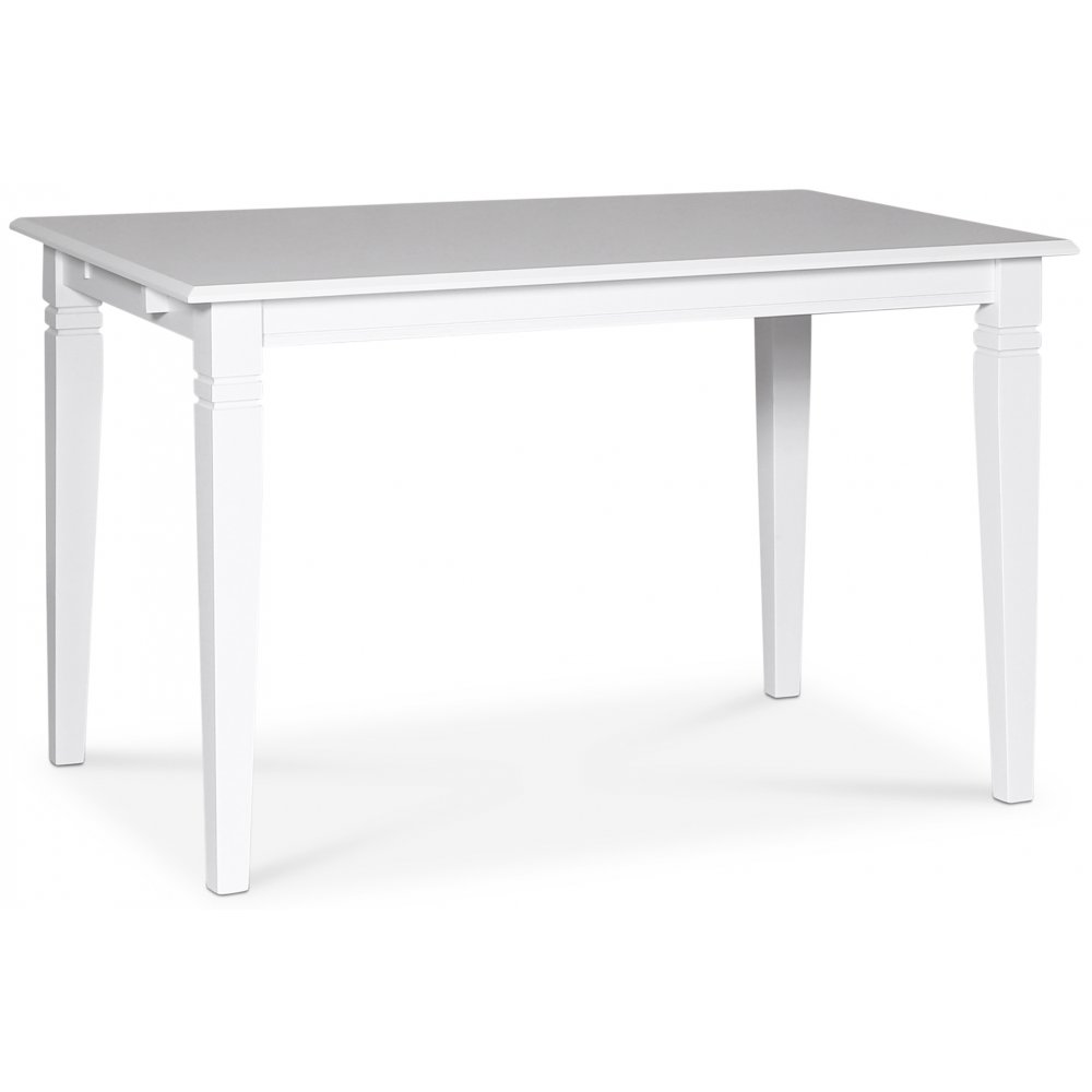 Sandhamn matgrupp Klassiskt utförande. Stilrent matbord 120x80 cm matbord med vitlackade ben och bordsskiva.