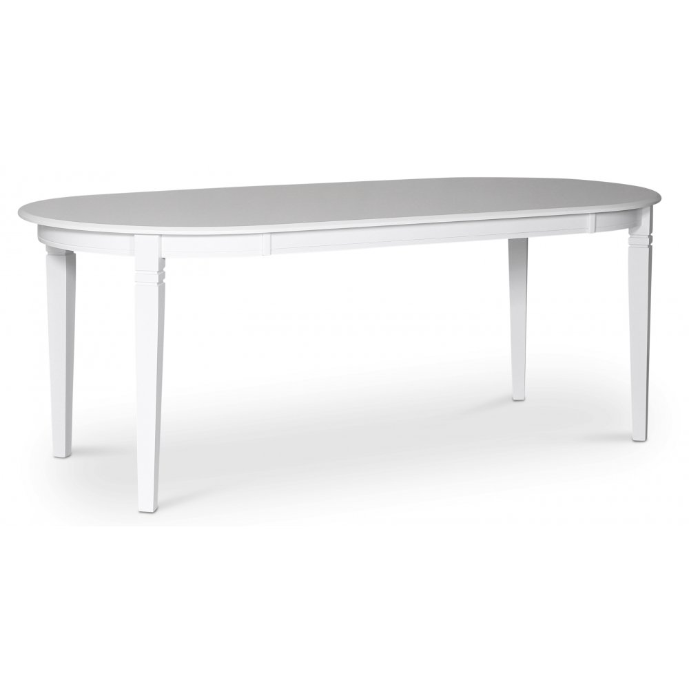 Sandhamn är en Klassisk matgrupp för praktiska behov! Ovalt bord med hela 200 cm längd och 95cm bredd för att få plats med många gäster matgrupp av hög kvalitet! Vitlackat massivt trä!