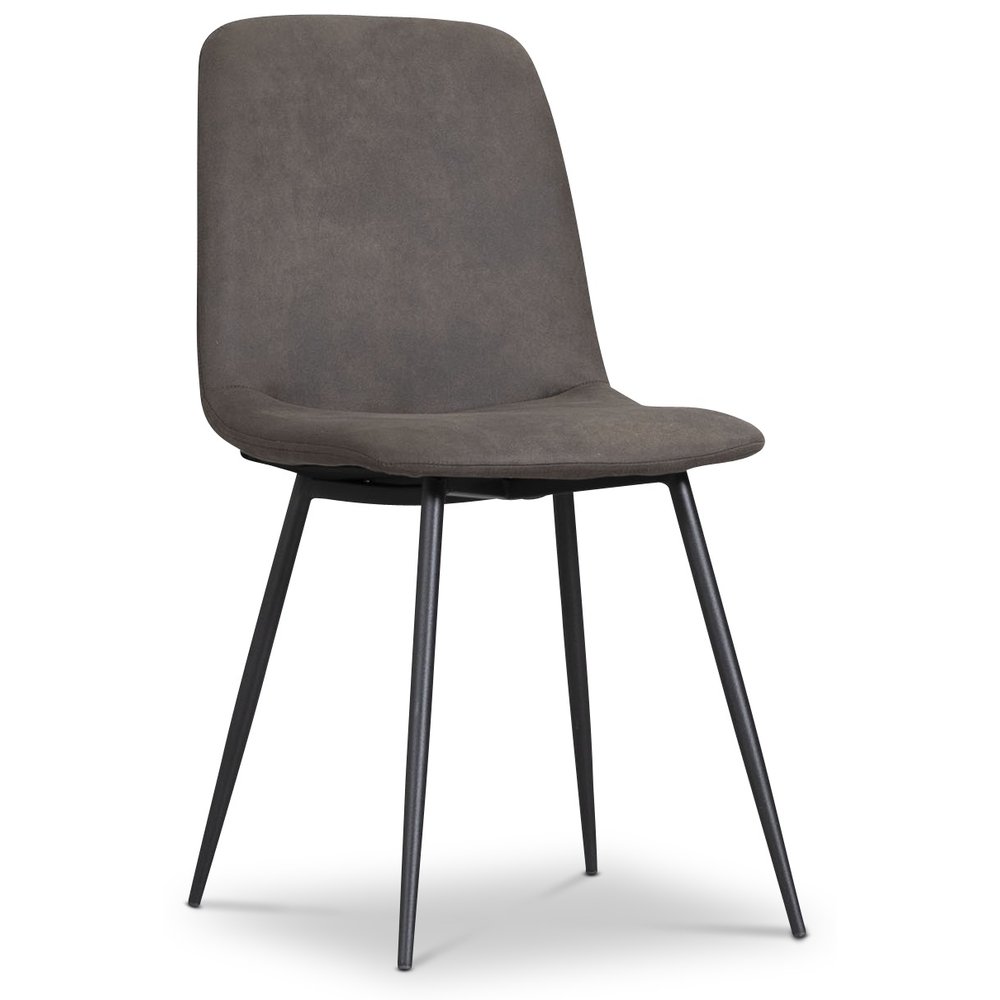 Matgrupp från Skånska Möbelhuset, Smokey matbord 120 cm i diameter med mdf-toppskiva med ljus betsad ekfoliering. Medföljer 4 st matchande Smokey matstolar i gråbrunt vintage tyg med svarta ben.
